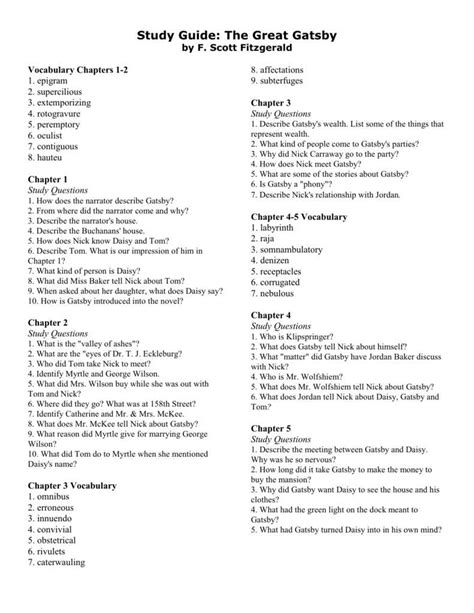 Download The Great Gatsby Study Guide Student Copy Answers Doc